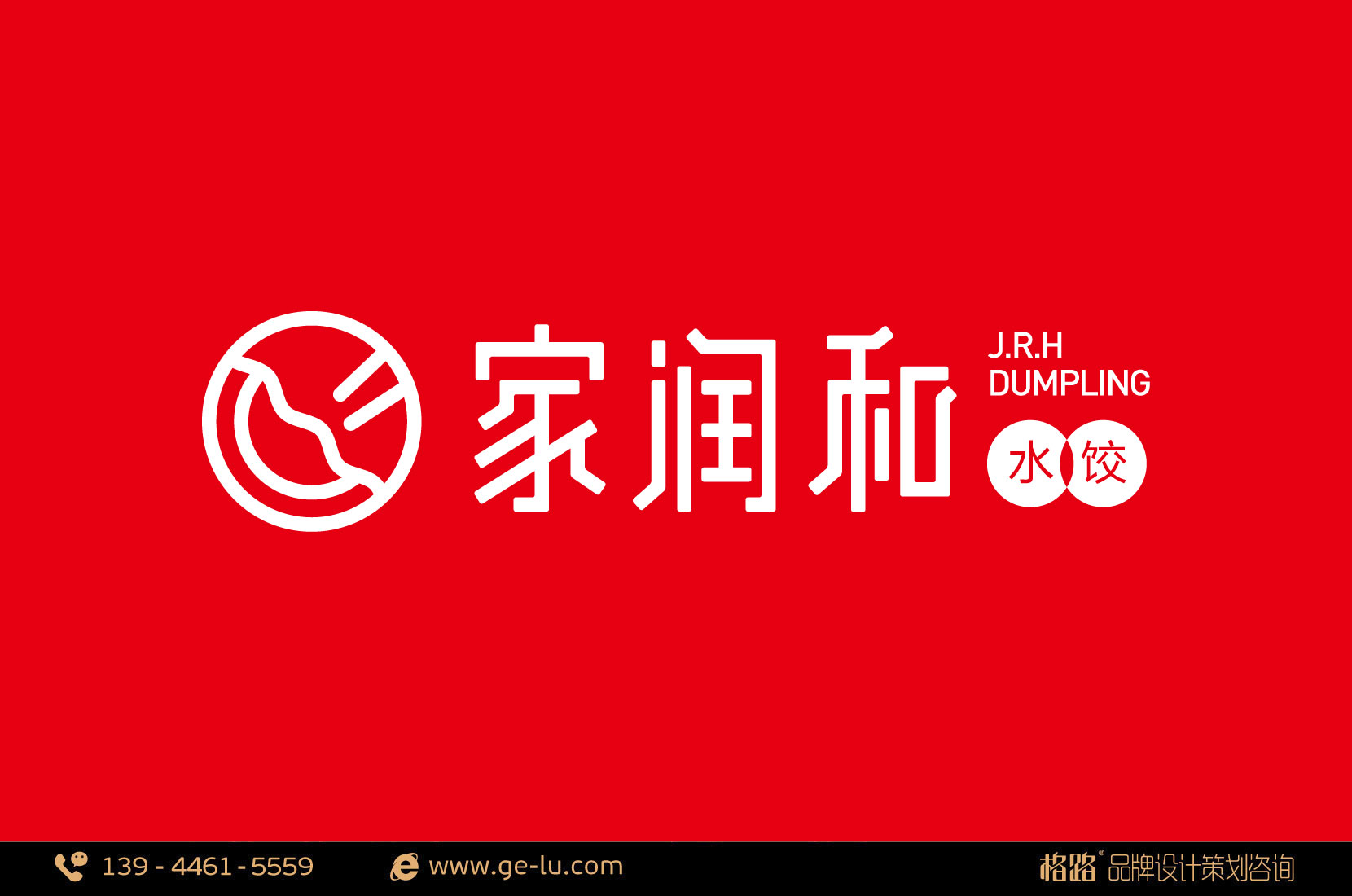 家潤和LOGO圖形有餃子、盤子和筷子組合而成,突出了家潤和的專業屬性;LOGO外形以“圓”作為載體,寓意著圓圓滿滿,周而複始,不斷發展的美好前景,圓形至古就有“天圓地方”一說,“天”為祥瑞與福祿之源,同時,我國民間傳統吉祥圖案中,以圓形為喜慶、吉祥之意,餃子與圓的組合完美的契合中國人心中對闔家團圓的情感;LOGO的標準顏色采用中國紅,同樣為了突出喜慶與吉祥之意。
