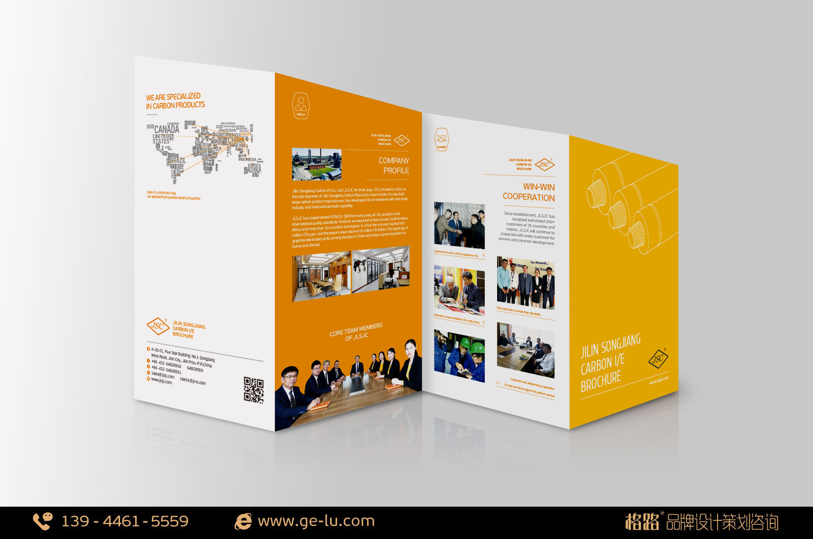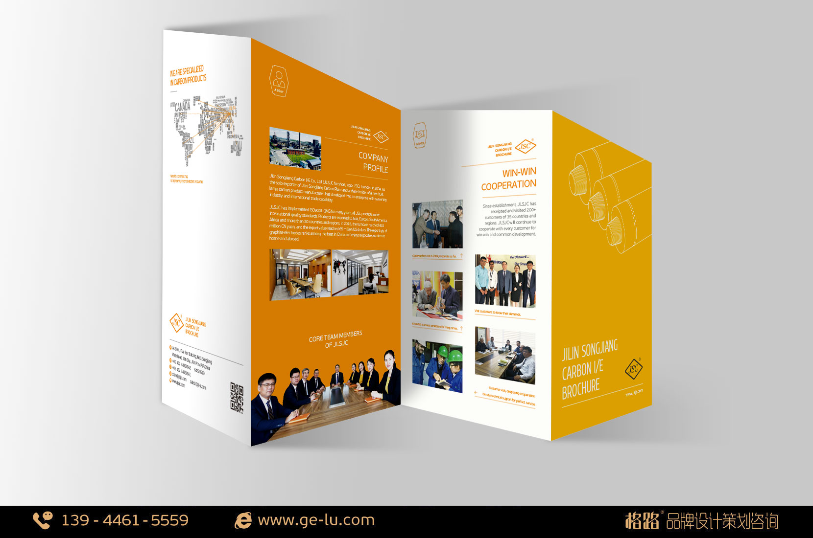 格路設計打破常規的折頁都是方方正正的矩形,靈感來自鬆江炭素logo“菱形”輪廓,所以如果把折頁的輪廓結合“菱形”斜邊設計而成,也能體現品牌差異化。相對應內容文字、圖片也是根據異形的版麵進行“量身定製”。