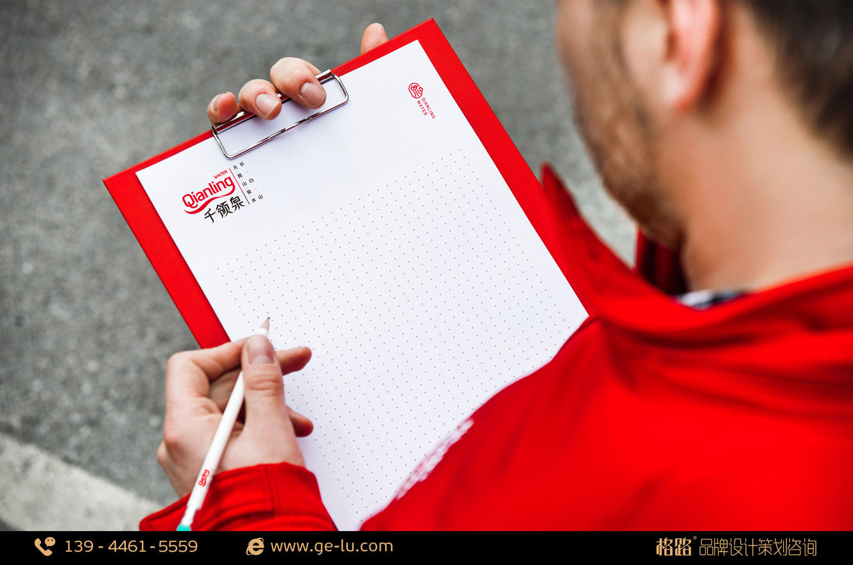 以代表熱情、朝氣的紅色為主色調,不僅體現了千領泉積極向上的企業形象,也展現了品牌理念及產品來帶給消費者更多的愉快、幸福、朝氣。