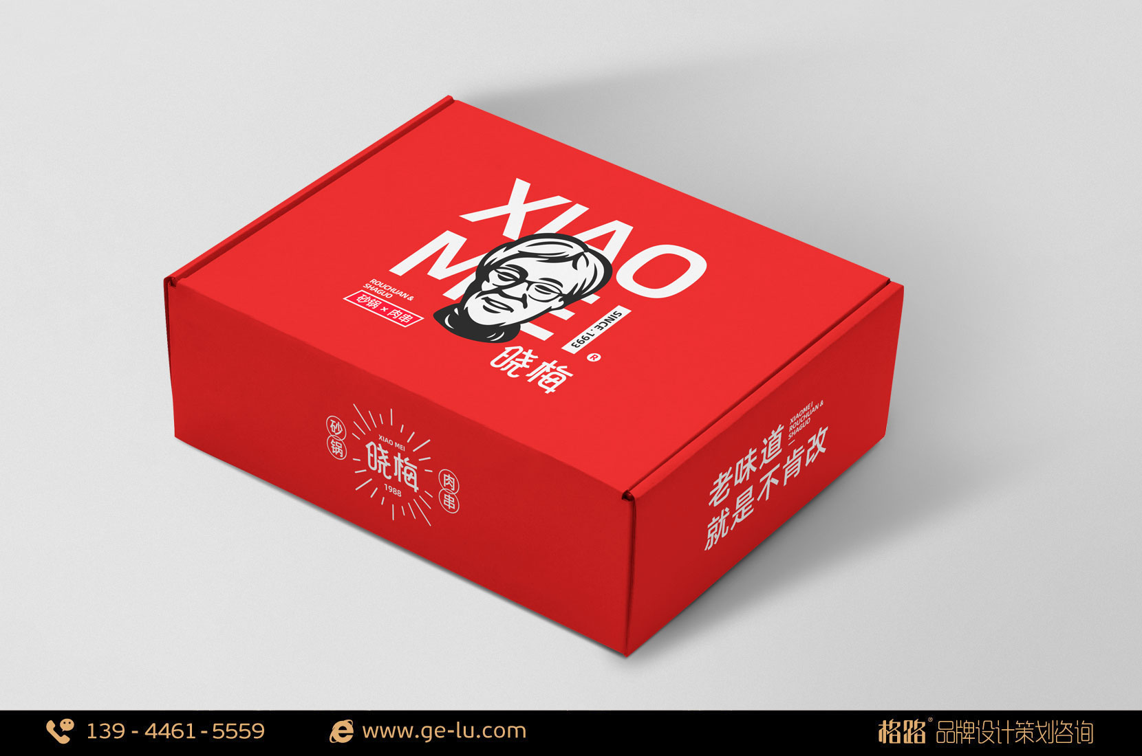 曉梅LOGO采用了簡約時尚的設計風格,以品牌創始人肖像做為核心創作元素,“XIAO MEI”漢語拚音做為襯底簡潔明快且更加樸實、接地氣,紅色則代表著曉梅對燒烤以及顧客幾十年如一日火一般的熱情。整體設計清晰、準確地詮釋出曉梅地道、美味的品牌初心。