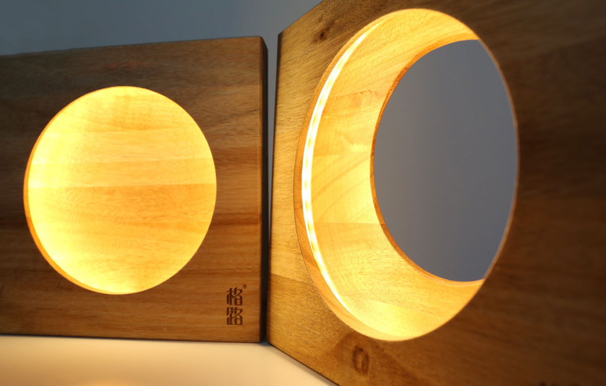 匠心/木作,月美/不凡! 原木是具有生命力,且溫暖人心的自然材質。我們本著工匠精神,將返璞歸真的創意設計與科技完美融合,打造貼近自然、深入生活的時尚創意木作。古人常以滿月之意來寄托思鄉團圓之情。借此,“璞月”以月為燈采用手工實木打造月光映襯在寂靜的夜晚,暖意中還有詩和遠方……