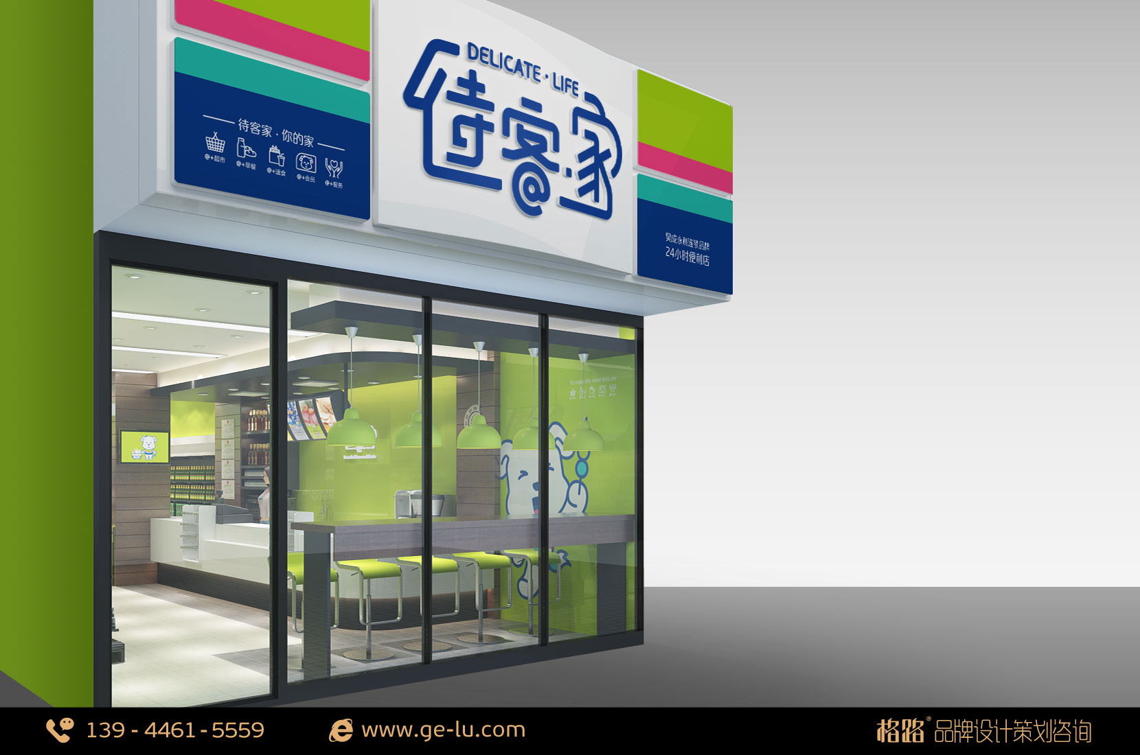 待客家便利店(Delicate.life)是一家連鎖便利商店,主要銷售日常便利店常見貨品包括飲料、零食、便當、雜誌等,從高端小區為主要覆蓋區域,以人為本,將生活服務、餐飲服務、快遞谘詢等服務進行整合。並以嶄新、專業的服務,深獲各界喜愛,成為國內便利店市場中一顆耀眼的新星。