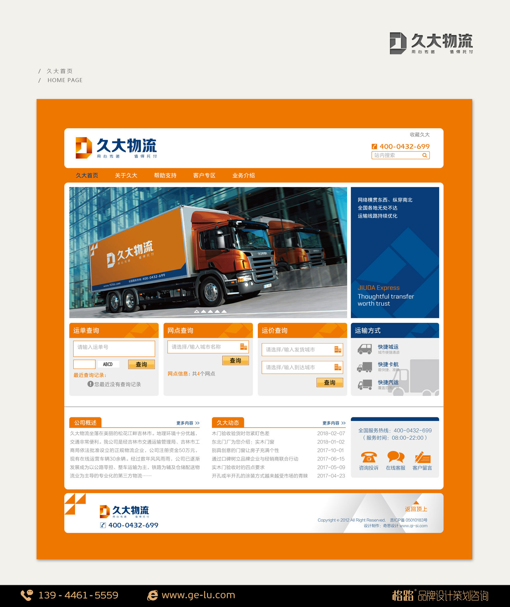 久大物流是經吉林市交通運輸管理局、吉林市工商局依法批準設立的正規物流企業,公司注冊資金100萬元,現有在線運營車輛30餘輛。經過數年風風雨雨,公司已逐漸發展成為以公路零擔、整車運輸為主,鐵路為輔及倉儲配送物流業為主導的專業化的第三方物流服務公司。是吉林市政府重點扶持的物流企業之一。