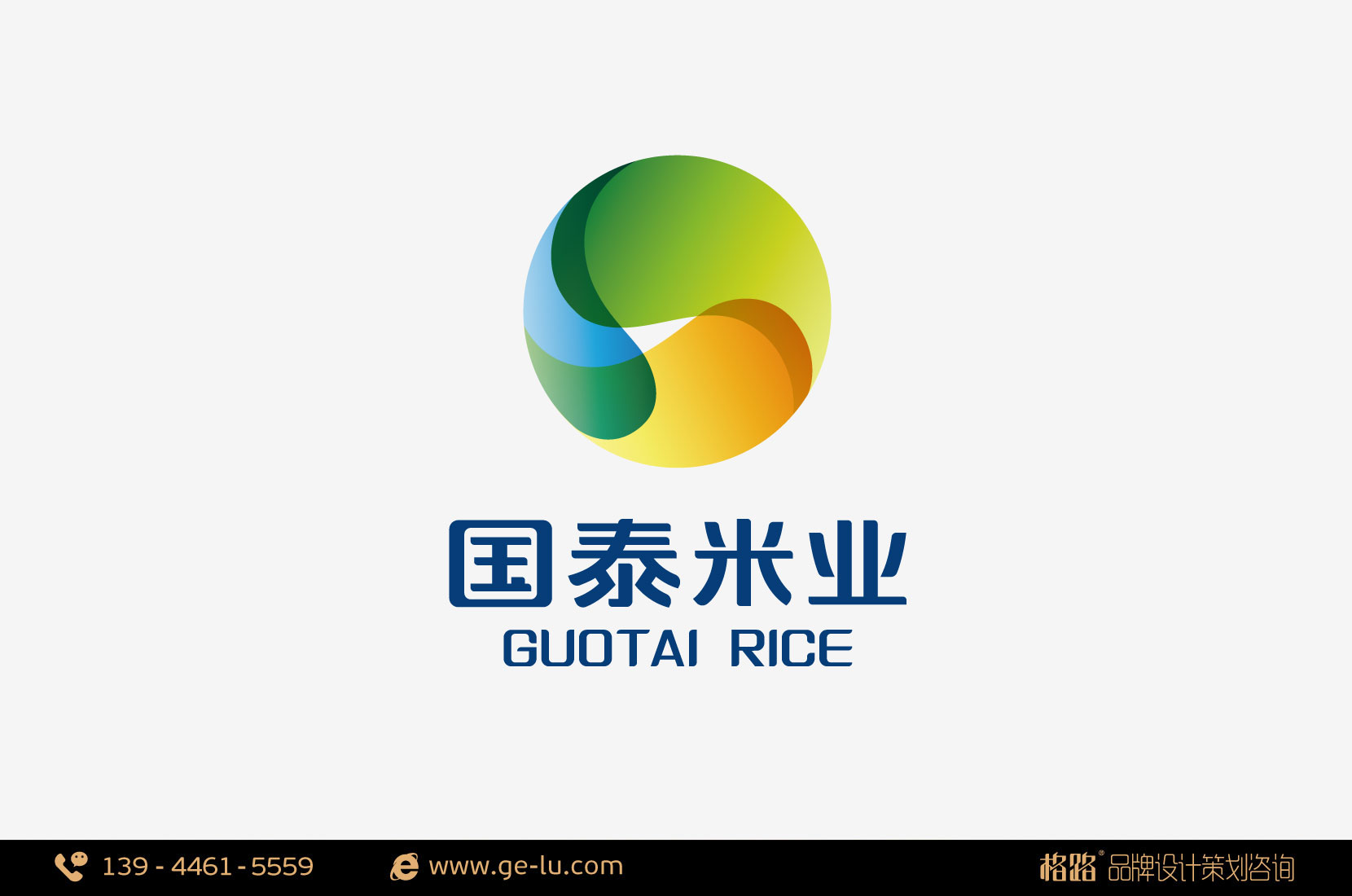 格路設計為國泰米業LOGO設計之初就用象征生態的綠色、象征科技農業的藍色、xiangzhengfengshouxiyuedechengseyuyizhuoyuepinzhidechanpinyuwanshandefuwulinian,bingtongguoduisecaixinichuli,shiqifengfuercengcifenming。yuanrundewaixingxiangjinjinyoudongdeyuer,juhehuoli、銳意創新,動感旋變之球,賦予時代品牌內涵。圖形巧妙融合國泰首字母:“G”,突出品牌獨特識別性。