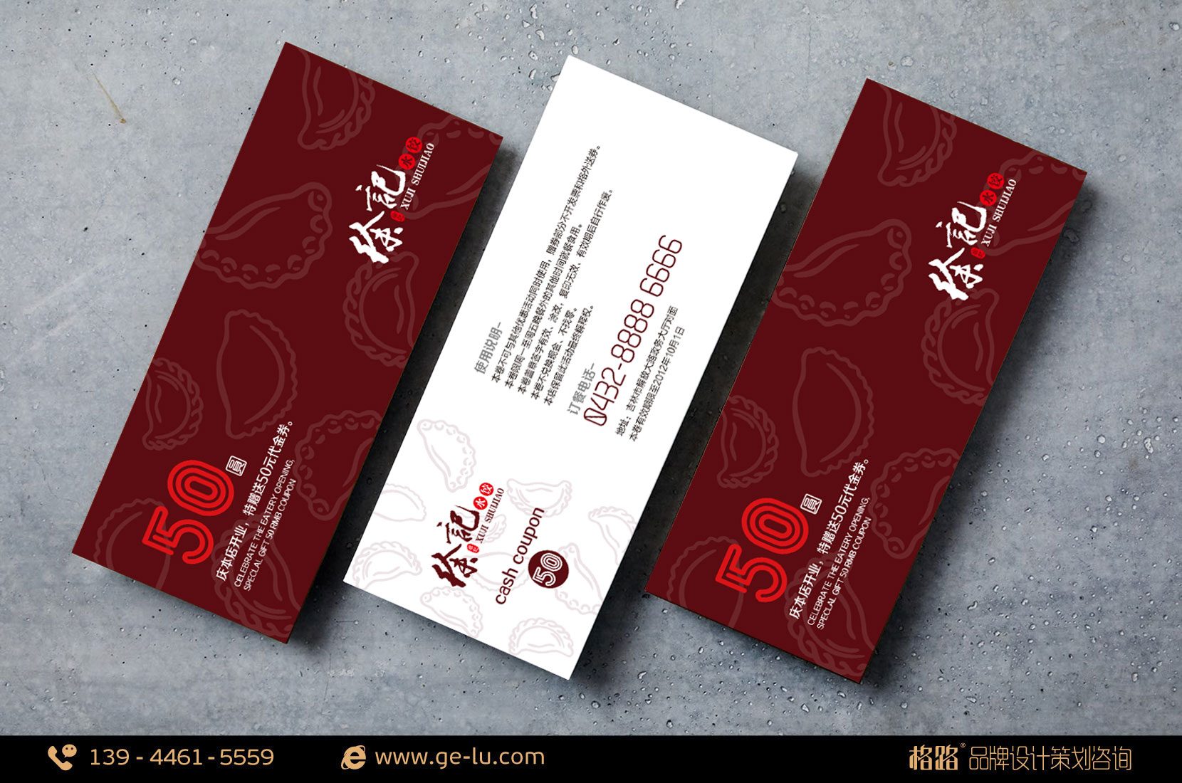徐(xu)記(ji)水(shui)餃(jiao)中(zhong)英(ying)文(wen)構(gou)成(cheng)標(biao)誌(zhi)的(de)核(he)心(xin)形(xing)象(xiang),蒼(cang)勁(jin)有(you)力(li)的(de)造(zao)型(xing)洋(yang)溢(yi)著(zhe)品(pin)牌(pai)淳(chun)樸(pu)憨(han)厚(hou)的(de)中(zhong)式(shi)文(wen)化(hua),配(pei)以(yi)宋(song)體(ti)字(zi)和(he)印(yin)章(zhang)造(zao)型(xing),傳(chuan)達(da)著(zhe)中(zhong)式(shi)文(wen)化(hua)與(yu)現(xian)代(dai)品(pin)味(wei)的(de)完(wan)美(mei)交(jiao)融(rong),飲(yin)食(shi)與(yu)文(wen)化(hua)聯(lian)姻(yin),簡(jian)潔(jie)大(da)方(fang),便(bian)於(yu)傳(chuan)達(da)、印象深刻。