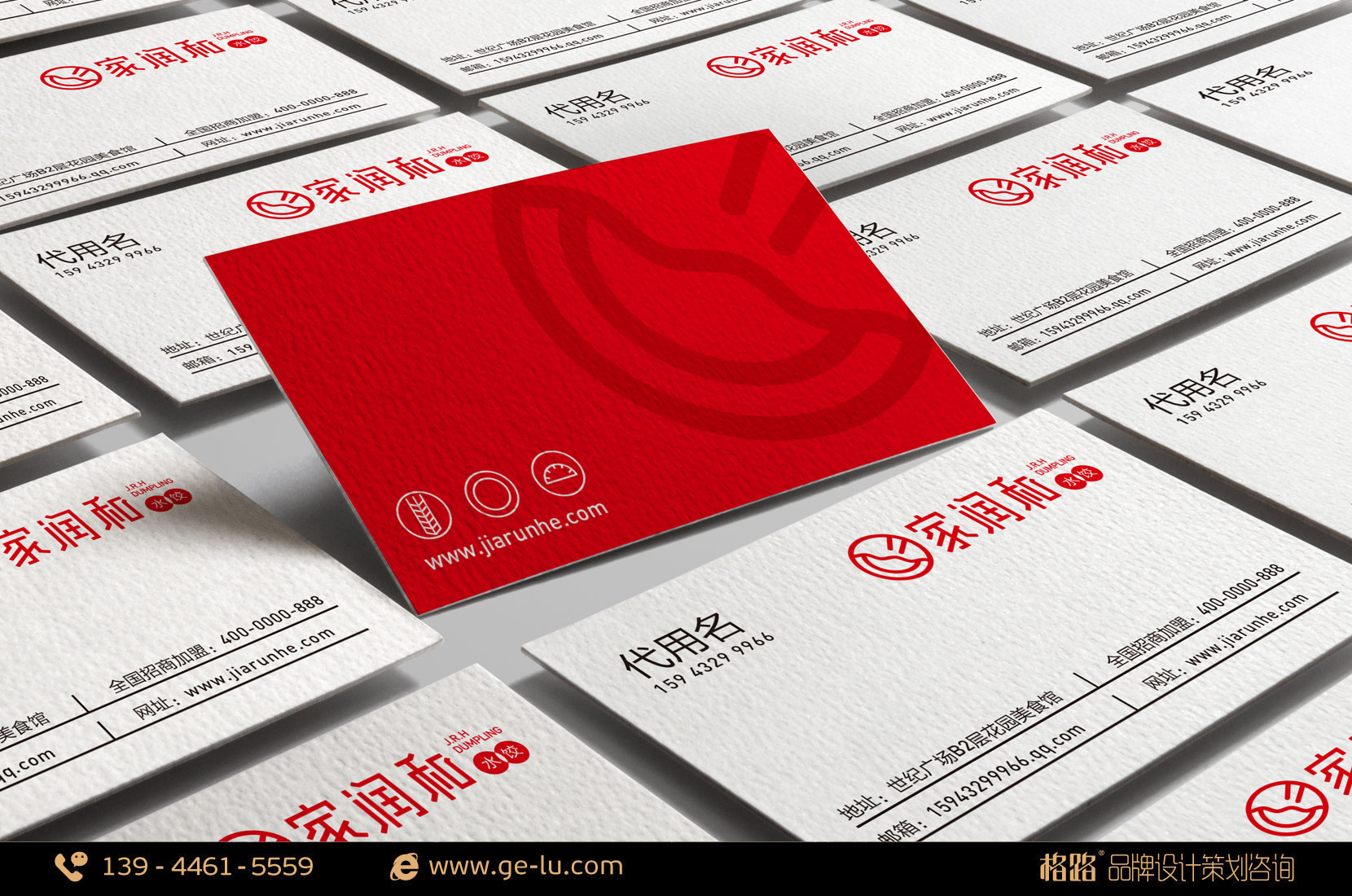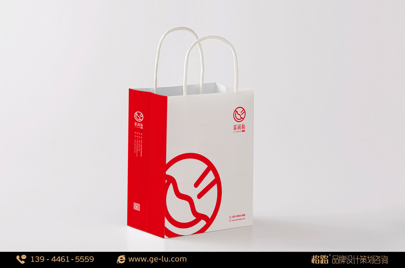 家潤和LOGO圖形有餃子、盤子和筷子組合而成,突出了家潤和的專業屬性;LOGO外形以“圓”作為載體,寓意著圓圓滿滿,周而複始,不斷發展的美好前景,圓形至古就有“天圓地方”一說,“天”為祥瑞與福祿之源,同時,我國民間傳統吉祥圖案中,以圓形為喜慶、吉祥之意,餃子與圓的組合完美的契合中國人心中對闔家團圓的情感;LOGO的標準顏色采用中國紅,同樣為了突出喜慶與吉祥之意。