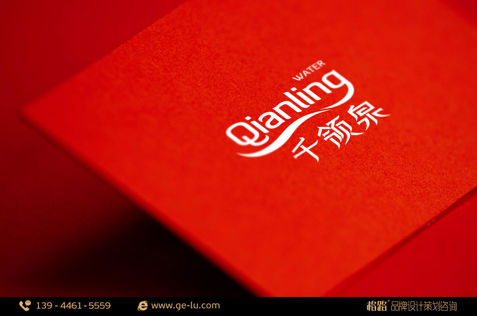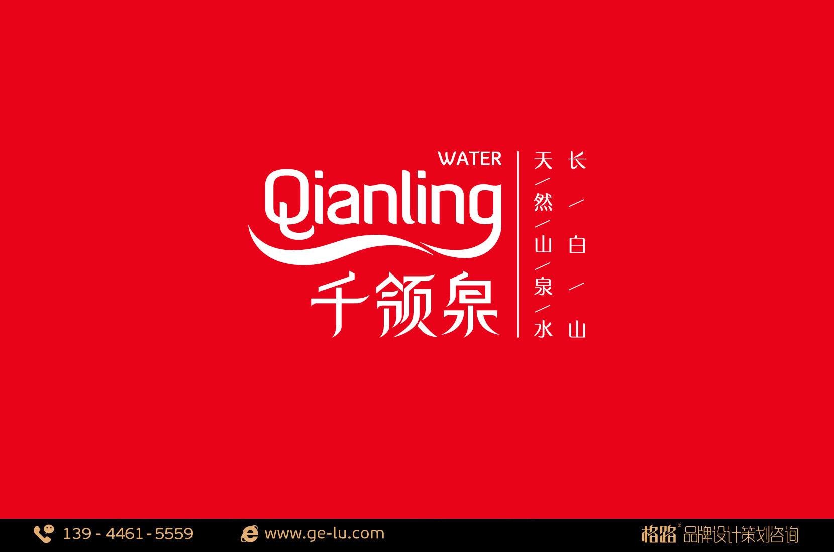 千領泉LOGO設計整體簡潔,主要是以千領的拚音“qianling”為藍本,點睛之筆在於“g”形成的飄帶,漢字的筆鋒也柔化成與水流相似的形狀,輕鬆活潑,使千領泉更易深入人心;