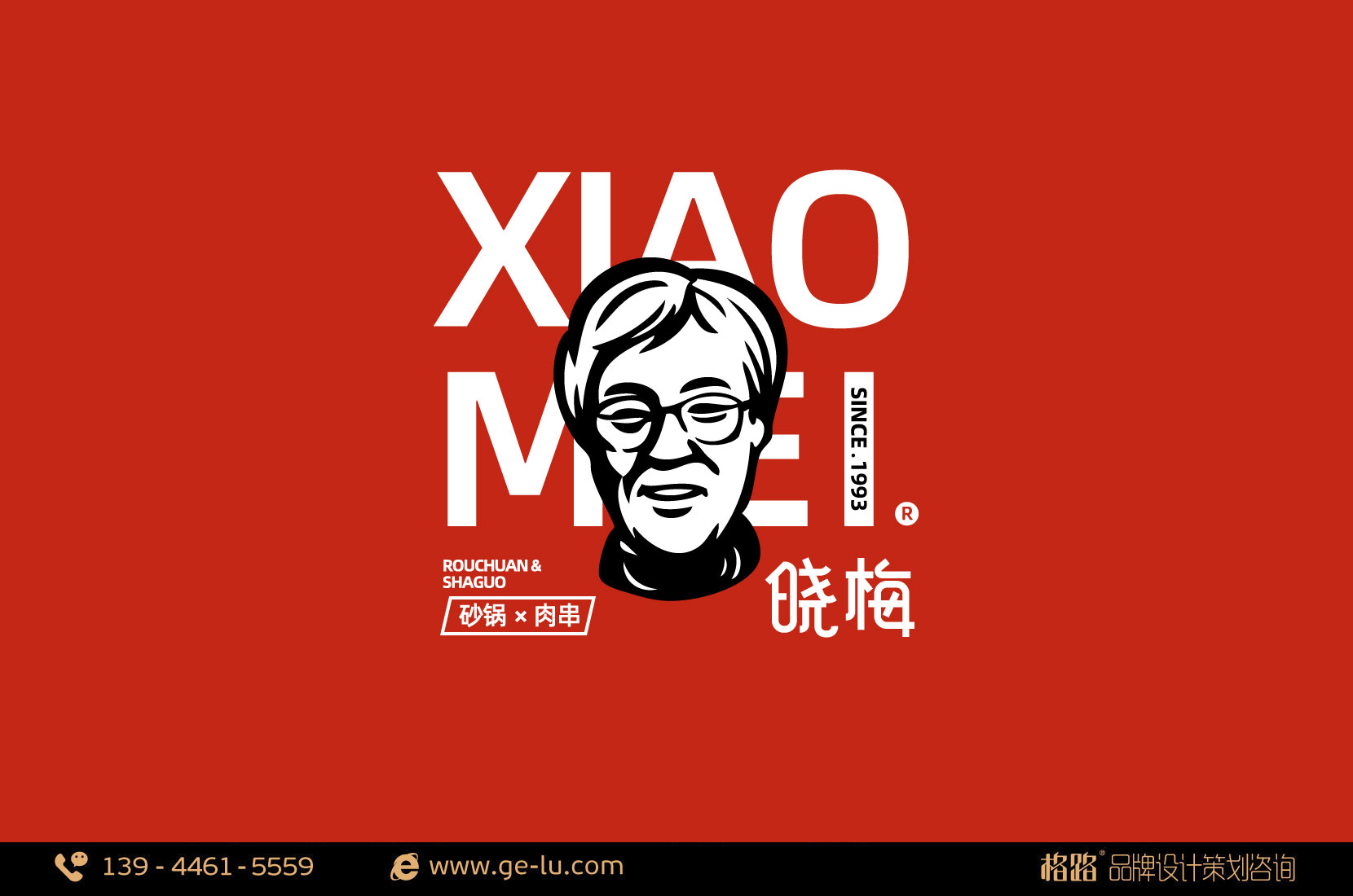 曉梅LOGO采用了簡約時尚的設計風格,以品牌創始人肖像做為核心創作元素,“XIAO MEI”漢語拚音做為襯底簡潔明快且更加樸實、接地氣,紅色則代表著曉梅對燒烤以及顧客幾十年如一日火一般的熱情。整體設計清晰、準確地詮釋出曉梅地道、美味的品牌初心。